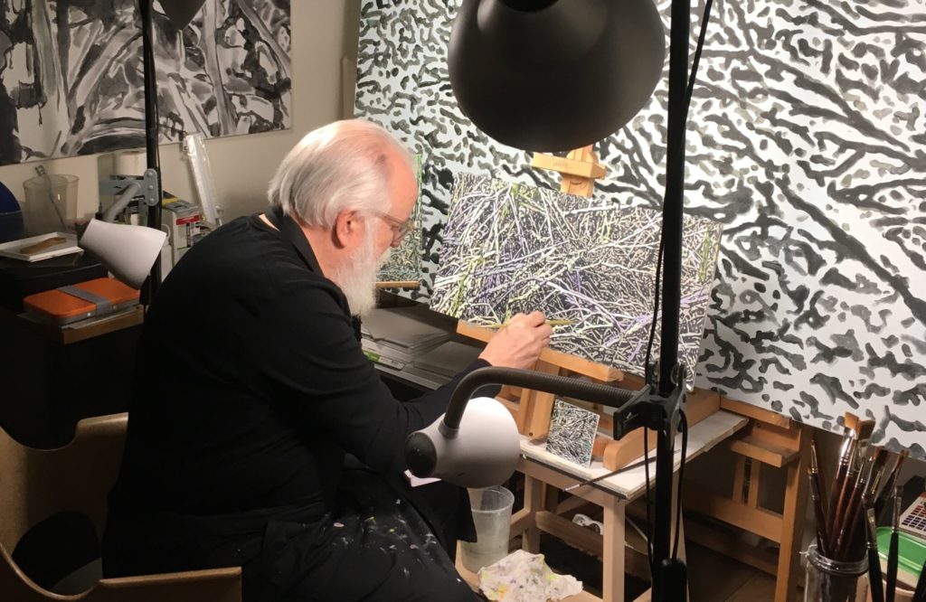 Luc Mabille’s artistic journey is one of deep-seated passion and continuous evolution. Touched by painting from a young age, his practice has been assiduous and lifelong. Initially developing his skills as a self-taught artist, a pivotal encounter in 1974 during his architectural studies with renowned Belgian artists A. Blank and R. Bruycker, alongside sculptor A. Courtois, marked a profound turning point. This meeting cemented painting as not just a pursuit, but a vital and essential part of his being. This profound connection to the medium, coupled with his background as an architect and professor, imbues his work with a unique blend of structural understanding and a sensitive exploration of form and space. In recent years, Mabille has dedicated himself to a more in-depth exploration of his art, producing series of paintings that, while diverse in technique and medium, are unified by a powerful societal and ecological commitment.
